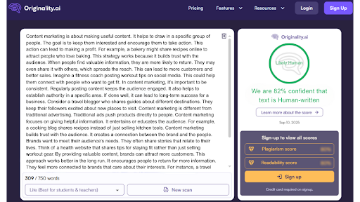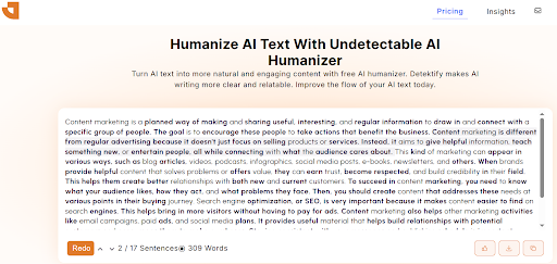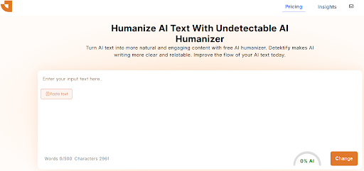 Detektify.com keeps things extremely simple. No long sign-up process. Just paste your text right away and hit “Humanize.” It will check AI similarity for free first, and then humanize your AI content immediately.