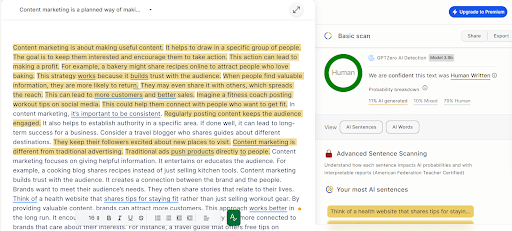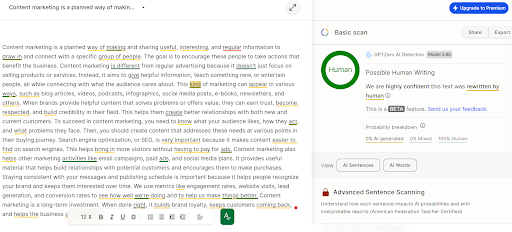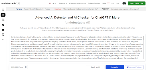 - Undetectable.ai: Its content is a bit more rigid. While it avoided keyword stuffing, some sentences sounded mechanical. Google’s algorithms can pick up on that.