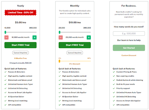 Undetectable.ai clearly has more features. Especially useful for students (job applicants, solvers) and developers (API). But its 10k word limit is still less for marketers or content writers. Because they usually detect a single passage multiple times while humanizing it.