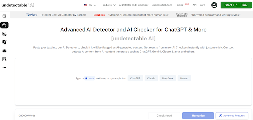 First impression matters a lot. If you open a tool and it looks clunky, you will leave and probably not come back. That’s why I checked how both Detektify.com and Undetectable.ai feel from the very start.